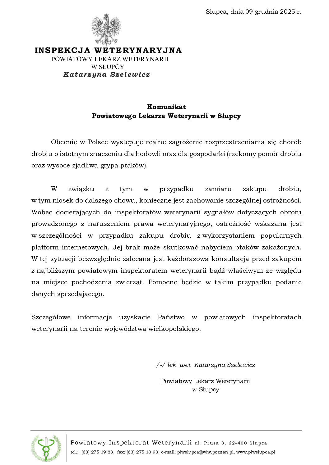 Komunikat PLW w Słupcy z dnia 09.12.2025 r.